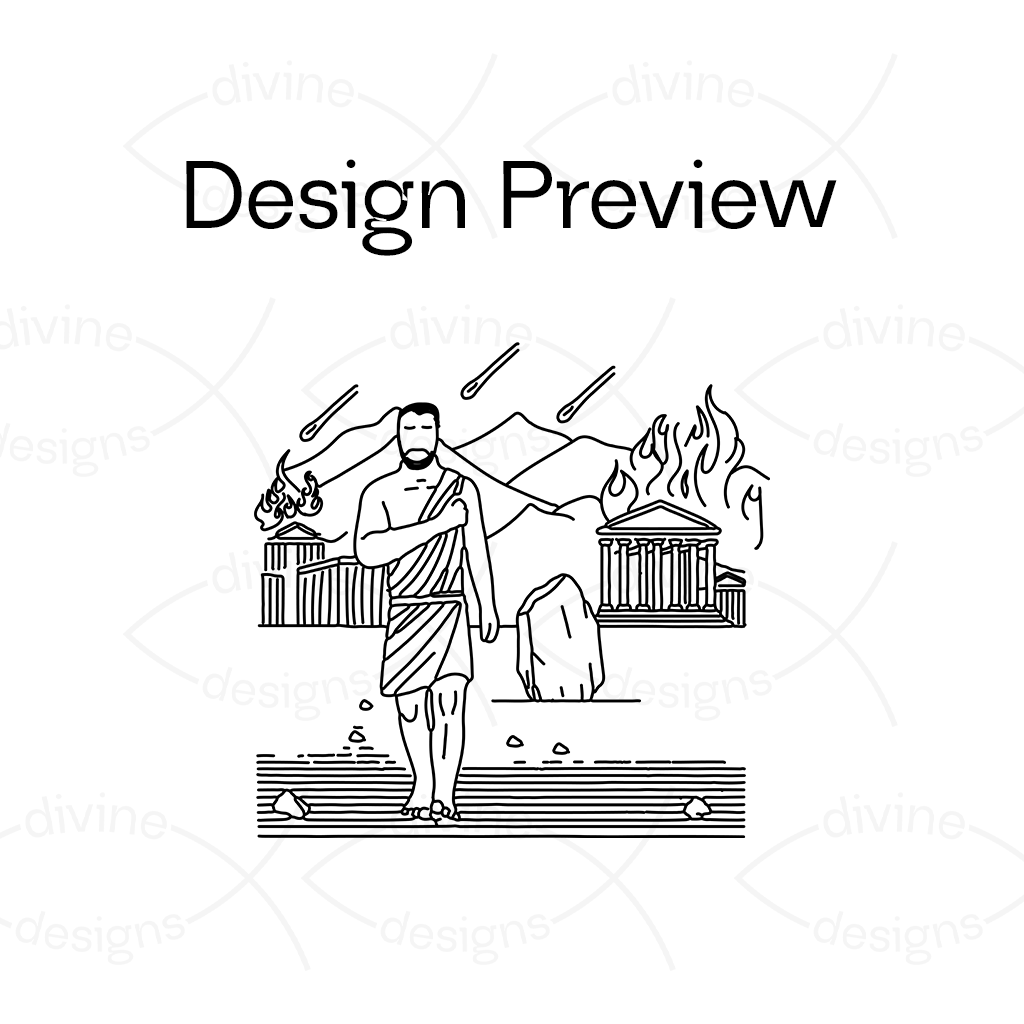 The artwork captures the moment Lot’s wife looked back at the burning city of Sodom and was turned into a pillar of salt. This striking scene serves as a powerful reminder of the consequences of hesitation and the importance of faith and obedience in the face of change.